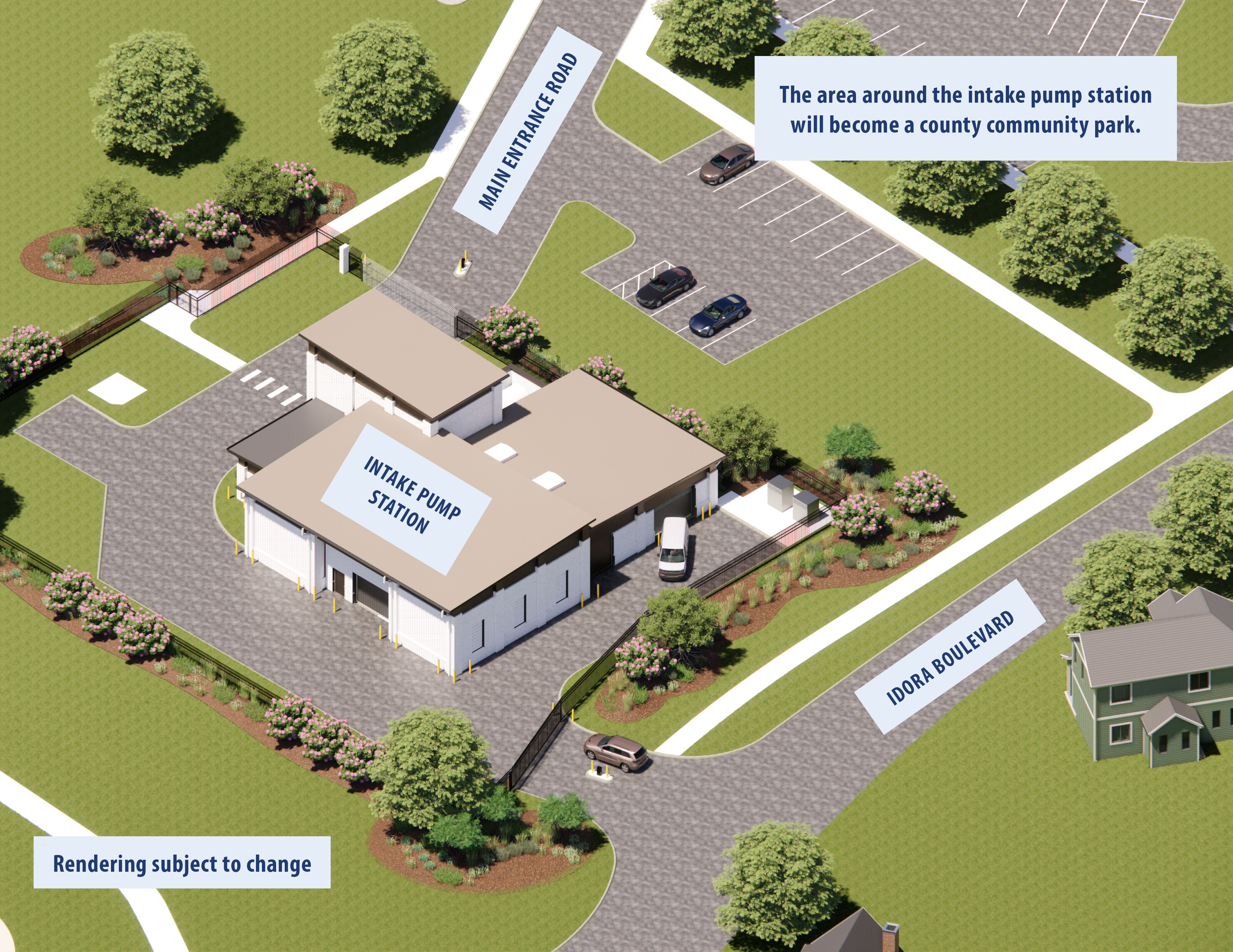Like the other two stations, it will not be staffed 24/7. Toho staff will visit the station daily to check on equipment and collect samples for regulatory compliance and water quality monitoring. The station will primarily be monitored remotely. Toho staff will mainly use the new road off Neptune Road that will be built near the reservoir’s storm water berm. When needed, the station’s entrance on Idora Boulevard will be used.