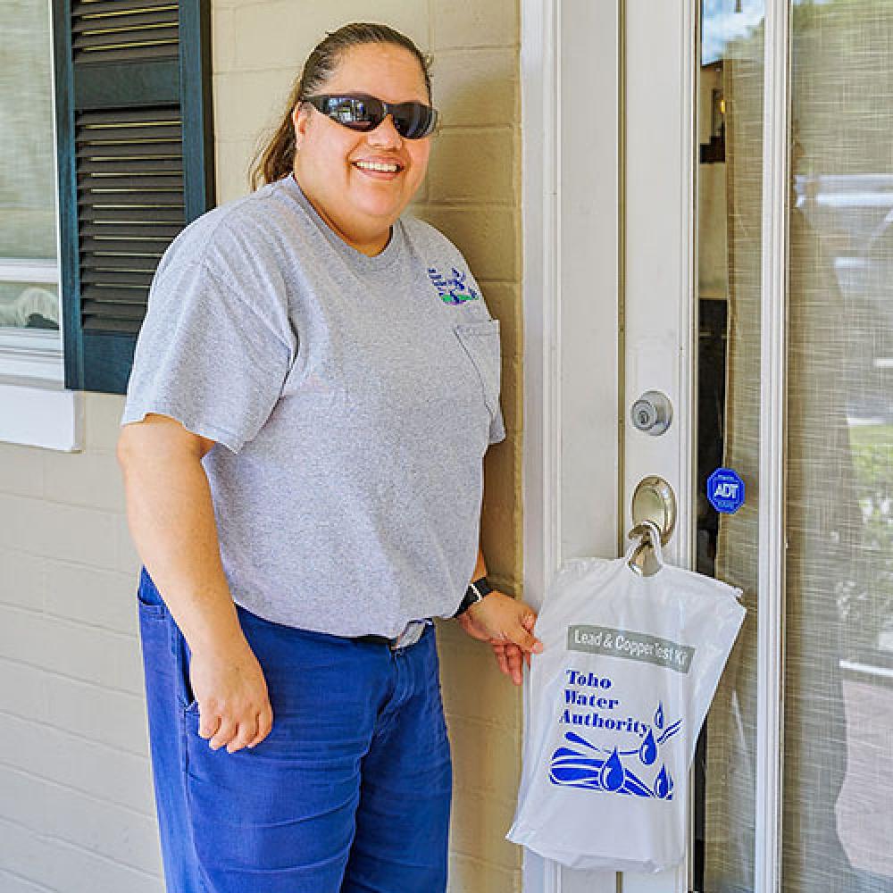 Our certified technicians collect samples following state and federal requirements. They are clearly identified with Toho Water Authority issued name badges and wear shirts will our logo. Their vehicles also have our logo on the driver and front passenger door. You may call our customer service at 407-944-5000 to verify identification.